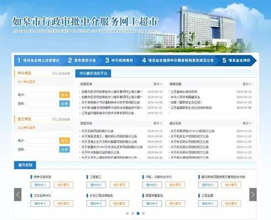 “如皋市网上中介超市平台”是政府提供的由网络和实体相结合,实现中介机构进驻超市,项目业主进超市选服务的综合管理平台。这一平台集中介信息展示、服务现场咨询、公开选取、签约见证、监督管理为一体,免费为如皋各级各部门以及社会提供优质高效的服务。它的建成运行,彻底打破行业垄断和保护,激发了市场活力,培育发展了开放型、竞争型的中介服务市场。