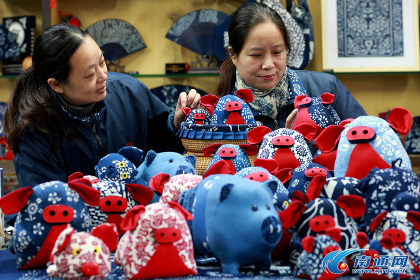 | 蓝印花布“生肖猪”亮相 为新年添喜气 |