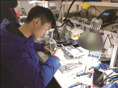 南通网讯 1月22日下午推开冯达工作室的门时,一个身着蓝衣的背影正埋头在高倍显微镜下摆弄一个零件,手边是各种型号的镊子、钳子。“屏幕摔了,帮我换一个。”“手机怎么都充不上电,快给我瞧瞧。”……即便是在工作日,顾客也络绎不绝。