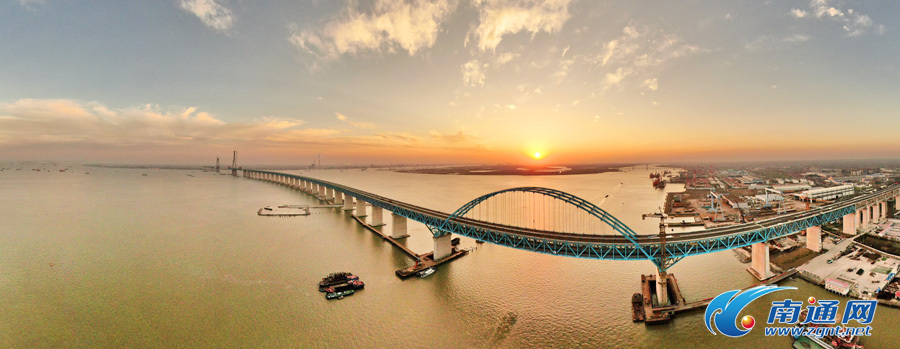 | 无人机航拍 沪通长江大桥夕照美如画 |