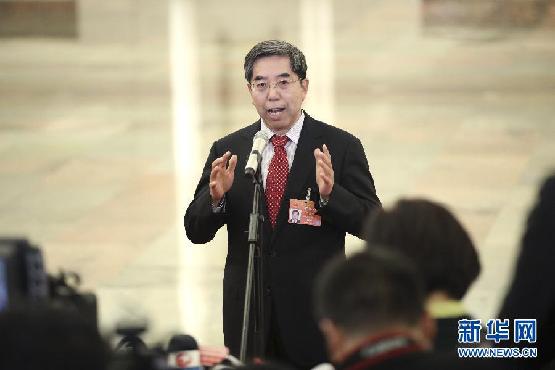 3月8日,十三届全国人大二次会议在北京人民大会堂举行第二次全体会议。这是国务院发展研究中心党组书记马建堂在“部长通道”接受采访。新华社记者 金立旺 摄