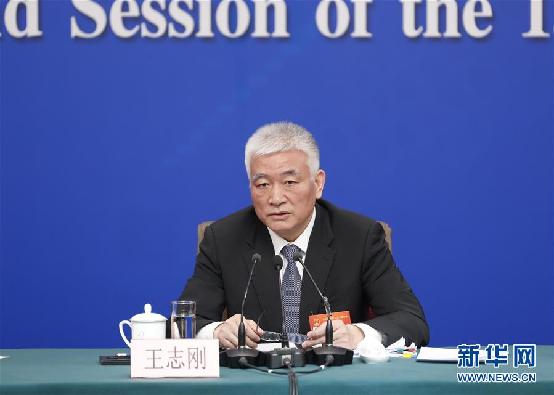 3月11日,十三届全国人大二次会议新闻中心举行记者会,邀请科技部部长王志刚、副部长李萌、战略规划司司长许倞、政策法规与创新体系建设司司长贺德方、资源配置与管理司司长张晓原就“加快建设创新型国家”相关问题回答中外记者提问。这是王志刚在回答记者提问。 新华社记者 沈伯韩 摄