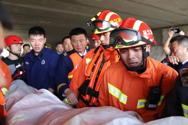 刘磊的失联牵动着现场所有人的心,多支救援力量立即在河中展开拉网式搜寻。13时16分,刘磊被潜水员发现,送医抢救无效,壮烈牺牲。获救女子家属悲痛万分:“英雄壮举,我们永生难报。”