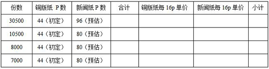 三、报价清单明细附表:本次《中招指南》按4个不同版本印刷,各版本总页数不同,按实际印刷页数结算,报价单请按报价单明细表要求分别填写一次报出不得更改的报价及附单价(注明铜版纸、新闻纸品牌,含送到指定地点运费及含13%增值税率),并提交4P128G铜版纸、4P内页45G-48G优等新闻纸打样样本。