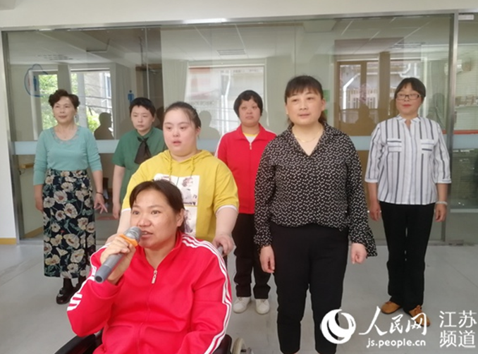“我知道,我一直有双隐形的翅膀,带我飞,飞过绝望……”5月28日,在南通市崇川区新城桥街道城南社区居家养老中心二楼“残疾人代表之家”,十几名残疾人正在排演节目《隐形的翅膀》,他们声情并茂的表演,感染了在场的每一个人。一曲唱毕,“开心果”唐宝宝(化名)径直扑进志愿者陈娟老师的怀抱,喊着“抱抱”撒娇,陈娟一把将唐宝宝拥在怀里。另一边,吴忧、沈明明(均为化名)也向陈娟围拢了过来,陈娟一连几声“真棒”,让他们脸上洋溢着快乐的笑容。