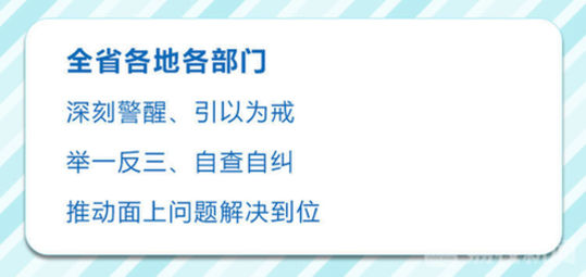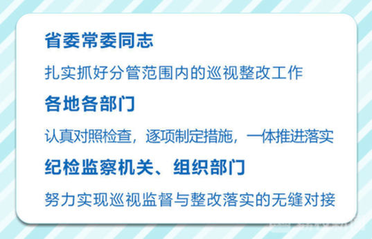 会议指出,发现问题是巡视工作的生命线,推动解决问题是落脚点,要聚焦做好巡视“后半篇文章”抓好整改落实。省委常委同志要切实担负起责任,扎实抓好分管范围内的巡视整改工作。各地各部门要认真对照检查,把中央巡视反馈意见整改与这次专项巡视发现的突出问题整改结合起来,逐项制定措施,一体推进落实。纪检监察机关、组织部门要切实履行巡视整改日常监督责任,努力实现巡视监督与整改落实的无缝对接。