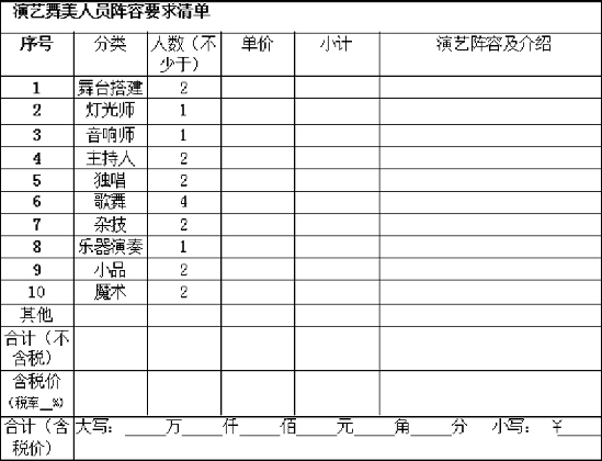 (一)乙方演艺阵容要求(详见磋商文件演艺人员报价清单要求)