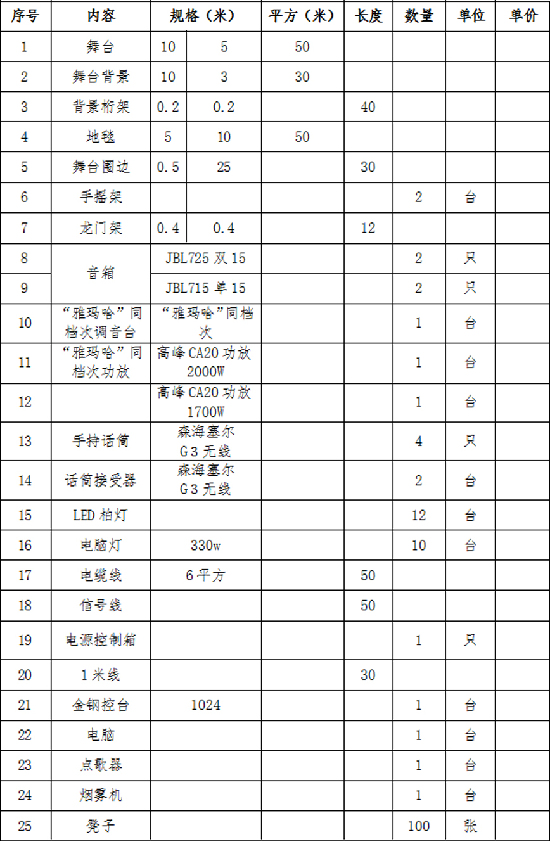 (1)演艺舞美人员要求清单