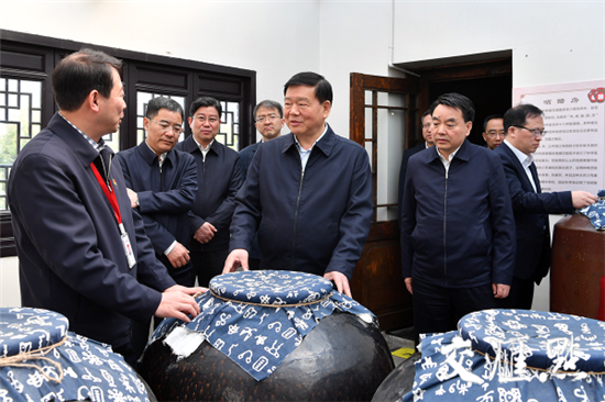 娄勤俭在镇江中国醋文化博物馆深入了解镇江酿醋历史和工艺传承发展情况。交汇点记者 张筠 摄镇