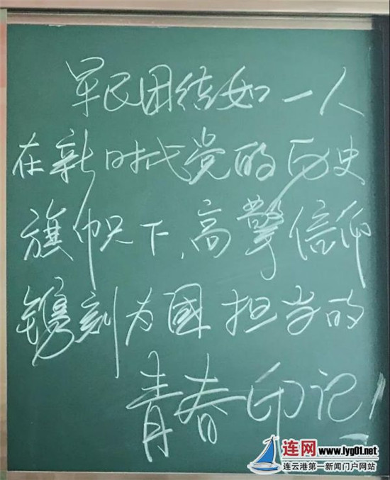 (离开学校前,子弟兵们将教室打扫得一尘不染,并留下了感人的“板书”)