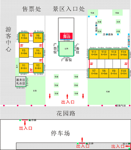 4. 布展材料堆放要有严格规定,前期材料保管自行负责。禁止堵塞景区主入口,禁止占用游客休息区域。禁止在布展现场进行油漆类基础加工。保留一部分游客集散区域。建议搭建材料最好为半成品进入现场安装。所有布展单位所产生的建筑垃圾在日产日清,带景区范围,否则将按规定收取建筑垃圾清运费。