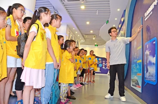 8月18日,如东江海义工联合会开展的“快乐课堂”——气象夏令营活动今天开课,30名留守儿童走进农业气象科普基地,了解海洋生物的迁徙、各类气象的成因,学习科学防范有害天气,参与气象科普趣味课堂。