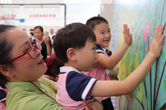 最后,一年级的新生还在现场成长树上摁下五彩小手印,寓意梦想无止境,成功无捷径,须牢牢抓紧,努力攀登。