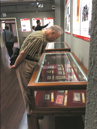 顾永祥指着一个展柜中展示的一张印有毛泽东肖像的纸币,对记者说,“这张是此次参展的红色货币中最珍贵的。”