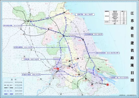 江苏现有连徐高铁、盐通高铁(含通张段),连镇、徐盐、沪通、南沿江六条铁路在建项目,再加上刚开工的宁淮铁路,在建铁路投资总规模约2557亿元,在建铁路里程将达1512公里,在建高速铁路里程将达1392公里。徐盐铁路、连镇铁路连淮段今年将建成通车,江苏今年将新增高铁通车里程433公里,同时高铁通车总里程达到1279公里。到2020年底,连镇铁路淮镇段、连徐铁路、沪通铁路一期等铁路均将建成通车,我省高铁总里程将超过1800公里。