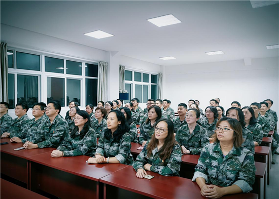 我们是一个集体,绝不让一个人掉队,这是中青班学员们军训前的共同约定。面对艰苦的训练,全员齐上阵,没有一个打退堂鼓。立正、稍息、跨立、向左转、齐步走、跑步走、正步走……学员们在练兵场上一丝不苟执行教官的每一个口令,腰站酸了、腿跑僵了、脚磨破了,听不到一声叫苦喊累。“轻伤不下火线”。关节不好,坚持训练;肌肉损伤,坚持训练;感冒发烧,坚持训练。即使有两位学员确实因身体原因不能参加队列训练,也坚持一起准时出勤、旁边站立观摩,做好拍照、摄像、递水等后勤服务工作,无时无刻都与集体共甘苦、不分离。