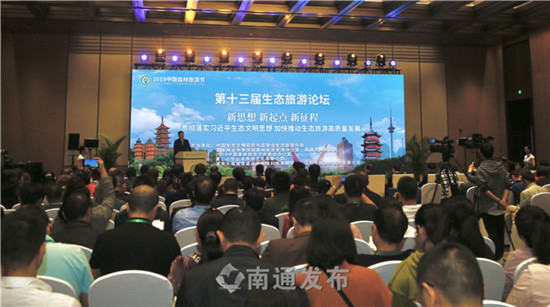 本网讯(记者汤晓峰)昨天,第十三届中国生态旅游论坛在南通国际会议中心举行。该论坛是2019中国森林旅游节的子活动之一。论坛以贯彻落实习近平生态文明思想、加快推动生态旅游高质量发展为主题,探讨新时代生态旅游发展和生态文明建设的重要理论、政策和实践创新问题。