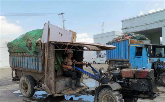 对于不易腐烂的生活垃圾,由村保洁员进行二次分拣,分为可回收物和其他垃圾。可回收物由长沙镇废旧物资回收站回收,其他垃圾纳入“组保洁、村收集、镇转运、县处置"垃圾收运处理体系,每天由18辆清运车辆运送至长沙镇生活垃圾压缩中转站做压缩处理,压缩后运往如东天楹环保能源有限公司进行无害化处置。长沙镇生活垃圾压缩中转站长管林表示,该站目前日均处理生活垃圾35吨左右。