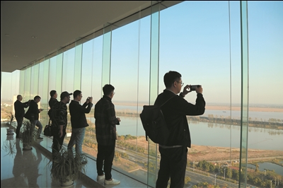 记者们都被海门的美景深深吸引,在赞叹之余,大家纷纷拿出相机、手机拍照将此记录下来。 记者李波