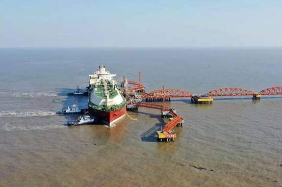 20日,世界上最大的Q-Max船“阿米拉”号轮靠泊洋口港,送来11.4万吨液化天然气,这是今年冬季保供第一船LNG从管道输入阳光岛上的江苏LNG接收站储气大罐。至此,洋口港累计接卸来自卡塔尔、澳大利亚、俄罗斯等20多个国家天然气2810.4万吨,源源不断运往华东五省一市,架起中国海上能源丝路的金桥。