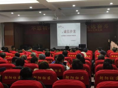29日上午,小海街道朝阳社区在社区会议室开展以“诚信朝阳,文明共建,幸福共享”为主题的诚信沙龙活动。活动吸引了社区近百名居民参加。