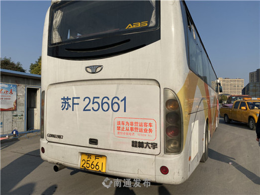 2日下午,南通市公安部门联合交通运输部门对市区23辆“营转非”车辆统一喷涂上了“该车为非营运客车,禁止从事营运活动”“监督举报电话:12328、110”的标识,并逐一进行拍照固定,这在全省范围内尚属首次。今后,南通市民一旦发现此类大巴车从事营运活动即可拨打电话举报。
