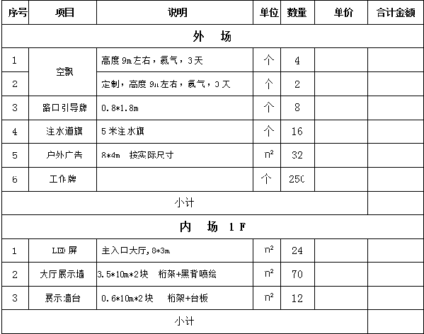 (四)布展内容项目明细及报价单:(最终推介活动具体布展规划、区位地点、时间以发标方书面通知为准。)