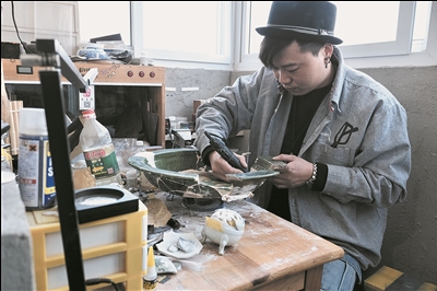 前段时间,一档《我在故宫修文物》的纪录片火遍大江南北,让神秘的文物修复工作走进大众视野。片子里的修复师,如同神医“妙手回春”,凭借双手将一件件破碎的文物修复得完美如新。 在南通,也有一个沉迷古瓷的小伙子。他打扮前卫,酷爱街舞和油画,光看外表很难将他与严谨的古董修复师联系在一起,但他的手艺却得到了《我在故宫修文物》主人公之一——王有亮老师的肯定。昨天,记者走进市收藏家协会高古陶瓷委员会会长王玺竣的工作室,听他讲述“潮人”的古瓷修复之路。 ![]() 与瓷片结缘,逐渐走出抑郁阴霾 潮卫衣、阔耳钉、马丁靴……在港闸区秦灶街道的工作室里,记者见到了一身嘻哈装扮的王玺竣。一百多平方米的工作室里到处摆放着各种瓷片,王玺竣笑着告诉记者,这些瓷片治好了他的抑郁症。 在接触古瓷之前,王玺竣是南通首批专业街舞老师。8年前,因为与合伙人在生意上产生分歧,加之感情变故,他离开了心爱的街舞圈。此后,他始终闷闷不乐,不愿与人交往,整天窝在家里画油画打发时间,终被医生确诊为抑郁症,需服药缓解症状。 一次偶然的机会,王玺竣捡到了一枚精美的青瓷片。经鉴定,这是一块宋朝的青瓷残器。他十分喜爱,以上面的人物为灵感,创作出一系列油画。画成后,他将作品发上朋友圈,收获众多业内专家点赞,这让他开始对古瓷产生了兴趣。 说干就干,他将过去开街舞培训班挣的上百万元全部投入其中,逛博物馆、找老师、搜资料、买瓷片、学修复……他单枪匹马,花了五六年时间深入了解、学习这门手艺,甚至独自前往深山里的窑址采集瓷片。正是因为沉浸式地钻研,他的技艺飞快提升;也正因为如此,他打开心扉与人交流,逐渐恢复了开朗。 化残缺为美,残破瓷片古物今用 “是这片……不是,是这片?”工作中的王玺竣格外专注,他眯着眼坐在台灯下,一片片对比瓷片。随后,还要经过简单还原、再拆解、清洗、粘接、填补、做色、做釉,他才能完整修复一件瓷器。 ![]() 王玺竣介绍,在修复过程中,他常用一种名为“大漆金缮”的技艺。大漆金缮,顾名思义就是在修补过程中以天然大漆作为黏合剂修复物件,再用金粉、金箔加饰,从而使老旧破碎的器物重新焕发光彩。为了学好这门技术,他吃了不少苦头。大漆源自天然树脂,极易引起皮肤过敏。王玺竣曾屡屡“中招”,可他对大漆金缮的热爱依旧有增无减,“大多数人无法忍受大漆过敏的痛苦,但只要有一颗虔诚向艺的心,还是能够坚持在这条路上一直走下去。”瓷器拥抱大漆,通过磨显、镶嵌、金缮等各种技法,让两种工艺融合实现升华。经王玺竣修复后的古瓷仿佛“活”了过来,瓷器坚硬平整,可以重新使用。 ![]() 除了修补,一些残瓷还被王玺竣包装成杯垫或者挂件来用。今年5月,南通博物苑举办的“残瓷犹珍”展览,南通近20个民间残瓷收藏者展示了收藏或者修补过的大约300件古代瓷器,其中就包括王玺竣的作品。因《我在故宫修文物》而广为人知的王有亮也亲临现场,称赞王玺竣“有天赋,值得肯定”。 成为志愿者,公益普及文物知识 王玺竣出生于1989年,从事古陶瓷修复的时间不算长,却修复过成百上千个古陶瓷器件,这些器件中最古老的是一件汉代陶罐。那些在别人眼中的“破砖烂瓦”,经过他的修复,起死回生。他总说:“古陶瓷修复应该要秉持最少干涉原则,还原最真旧貌。” ![]() 在修复瓷器过程中,王玺竣还利用自己娴熟的绘画技巧,将别人未用过的美术勾线笔、喷笔运用在瓷器修复上,对修复用具进行了创新。对于他来说,不断研究创新也是从事这项工作的动力:“陶瓷修复特别耐琢磨,看到一堆一堆的瓦砾,我就兴奋。将这些东西变得有生命,我特别骄傲。” “瓷器碎片的断口,能让研究瓷器的人直观地看到当年制作瓷器的技艺,普通市民虽然没有专业的知识,但是也能从一些展览、讲座、科普中了解到瓷器在我国演变的大致过程。”王玺竣说,目前他最想做的事情,就是让更多人了解瓷器发展的历史。空闲时间,王玺竣会去博物馆、社区、学校做一些讲座,还会在自己的工作室,教一些感兴趣的大人孩子摹画瓷器,或是做网络直播,让大家能够感知古代文物之美。 ![]() 王玺竣还有一个心愿,就是今后能开一间自己的博物馆,将自己收藏或修复的作品一一陈列,让更多的人在古瓷残件中感受传统文化的魅力。 记者黄哲 |