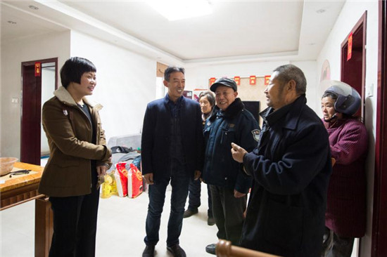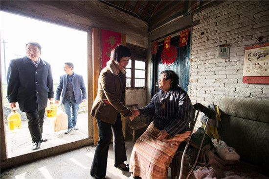 冬至前夕,中国建设银行南通分行党委书记、行长王芳一行,带着慰问金、大米、食用油、蚕丝被、小家电等慰问品,来到海安市高新区兴环村,慰问看望顾宝根和吴维同两个贫困家庭,送上党和政府对贫困户的关爱之情。 徐劲柏 摄 |
