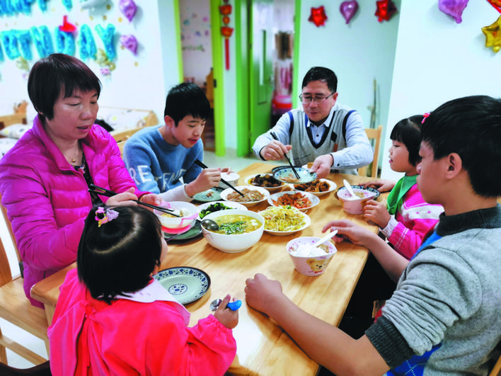 周末,一家人一起吃午饭其乐融融。记者李彤