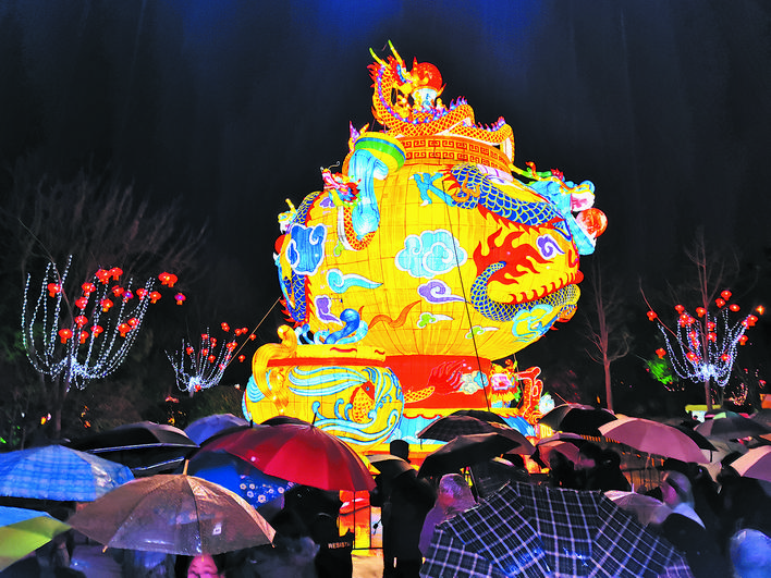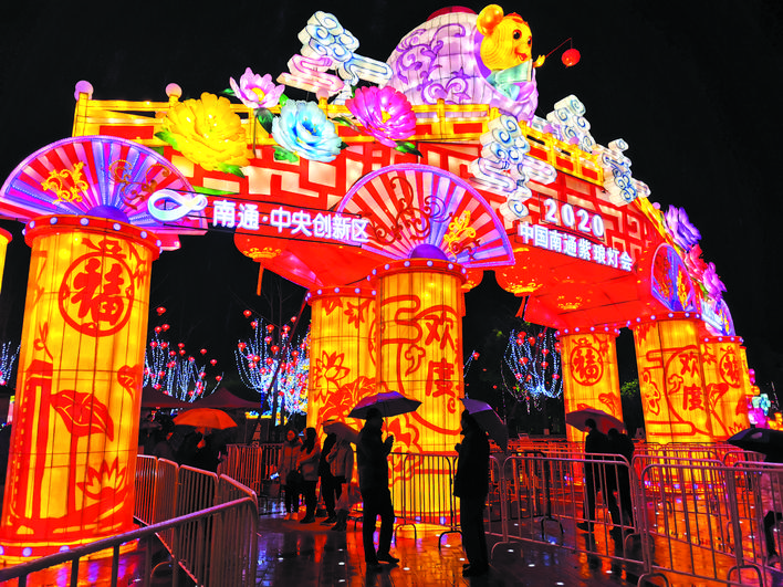 尽管通城微微细雨,但灯会却吸引了近万名游客入园观赏。本次灯会以“紫琅灯、中国年”为主题,130余组彩灯由200位自贡彩灯工匠亲赴南通中创区精心制作,充分凸显了自贡彩灯“高大新奇美”的艺术特色。灯会地点设在紫琅公园北部区域,共分为锦绣南通·欢度佳节、绿林水绕·多彩南通、梦幻童真·欢乐之旅、品味华夏·张灯结彩、火树银花·熠熠生辉5个板块。