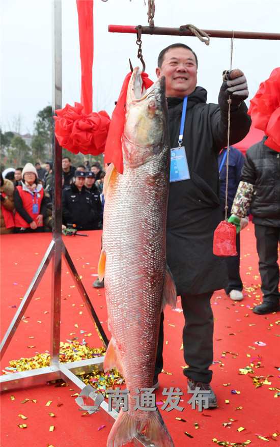 作为捕鱼节上最大看点的就是鱼王拍卖环节,鱼王披红挂彩,隆重登场,人们轮番举牌,竞拍鱼王。当天展示的三条大鱼分别是18.8斤的鲢鱼,63斤的铜头鱼和66.8斤的青鱼。“26680元第一次,26680元第二次,26680元第三次,成交!”随着主持人的一锤定音,一条重达66.8斤的青鱼被竞拍成交,顿时现场响起一片掌声,海安市第九届里下河捕鱼节也一下子达到了最高潮。