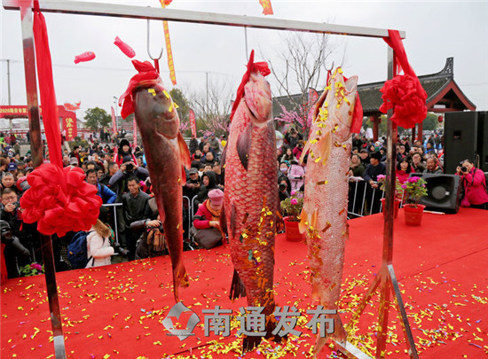 龙腾水乡迎新春,鱼跃西泊嗨起来。1月18日上午,以“鱼王贺新春,渔乐嘉年华”为主题的海安市第九届里下河捕鱼节在白甸镇西泊乡村旅游集聚区隆重举行,活动吸引了数千人参加,现场散发出一派鱼跃人欢的节庆气息。