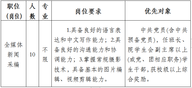 1.思想政治素质好,爱党爱国,立场坚定,有新闻理想和家国情怀,甘于奉献。