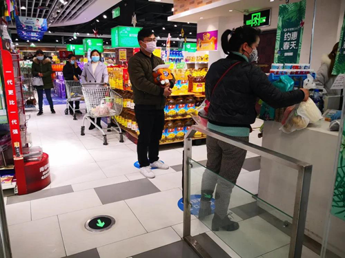 超市里,市民有序排队