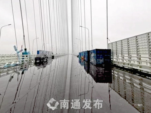 3月9日上午,在连绵阴雨中,我们随中铁大桥局的施工团队由锡通高速公路南通西收费站驶入沪通长江大桥的公路桥面。