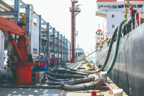 20日,中石化南通江海油库码头接卸成品油现场。中石化南通江海油库是江苏省内中心油库。主要开展成品油仓储中转配送业务,覆盖全省。江海油库科学防控疫情,全力组织成品油货源,24小时安全生产不中断,保障复工复产后的市场供应。 王俊荣 胡锡华摄 |
