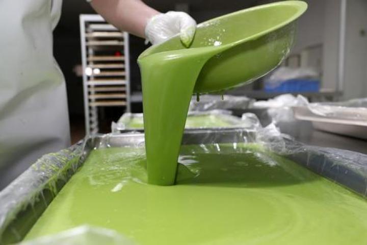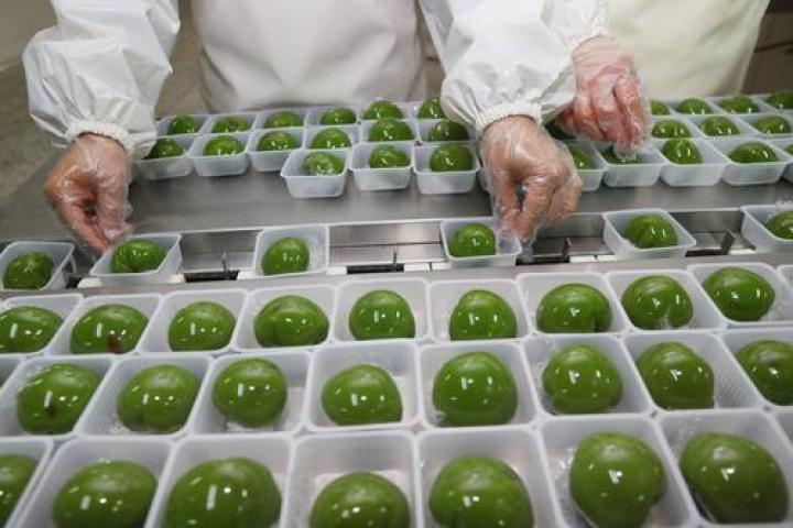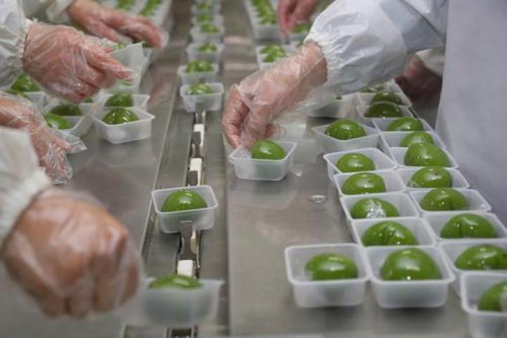 青团是江南地区一带的传统特色小吃,这家企业利用青麦苗和糯米等原料,通过泡米、磨粉、和料、上料、蒸制、出笼、滚揉、冷却、包馅和包装等工序加工而成。除了豆沙、芝麻、花生等传统口味,还推出了年轻人喜欢的蛋黄肉松,港式奶黄,海盐芝士等新口味。