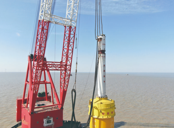 没有现成经验可借鉴,龙源振华团队就边施工边摸索,没想到遭遇惊险的“溜桩”意外,最初两根单管桩的沉桩均以失败告终。团队分析遍了各种可能的原因,发现问题出在桩上的三片防撞护栏上。“我们马上拿下来,边打边调整,最终,第三根成功了!”龙源振华副总经理曹春潼全程参与了项目施工。他说,这项国内首创给了团队将技术创新进行下去的信心。