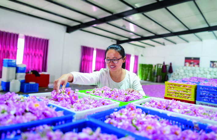 昨日,海安市城东镇石庄村村民在种植基地整理即将出售的玫瑰花。 近年来,该镇积极引导村民进行种植业结构调整,大力发展以玫瑰和盆栽鲜花等种植为主打的休闲观光农业,在扮靓乡村的同时,有效促进了当地村民就业增收。 |