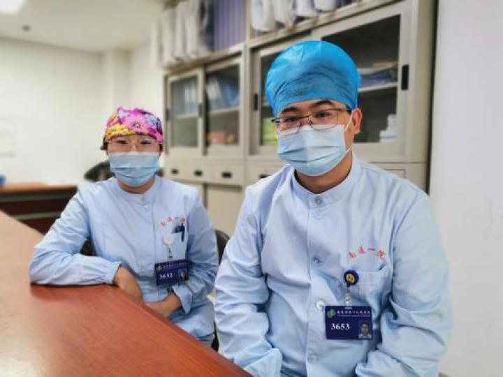 2020年1月,新型冠状病毒来势汹汹,闾小勇与王晓敏双双请缨,最终闾小勇踏上了第一批奔赴武汉的征程,在将近两个月的时间里,先后支援江夏区人民医院30病区和27病区。昔日在重症监护病房里吃苦耐劳、技术精湛的业务能手,那一段时间里是顶天立地、临危受命的热血勇士。留取咽拭子等易产生气溶胶高危操作,他总冲在最前面,还发挥自己重症专业特长,主动向当地护士传授重症专科护理知识,提高危重症患者护理质量。留在后方的王晓敏坚守ICU临床护理一线,由于特殊时期医院取消了半小时探视时间,她和同事们主动增加工作量,让家属与病患隔屏相见,用医者之爱给他们搭建桥梁。共同的信仰,共同的心愿,他们并肩作战,用小家的力量支撑起千万家的幸福安康。