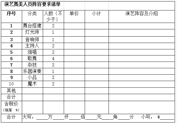 (1)演艺阵容内容要求