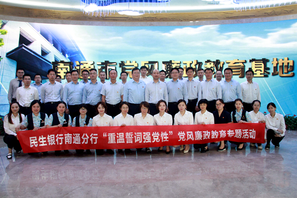 7月10日上午,为切实加强党员干部廉洁教育,积极营造正风肃纪反腐良好氛围,持续净化风清气正的政治生态,中国民生银行南通分行党员干部50多人参加了“重温誓词强党性”主题活动,一起参观南通市党风廉政教育基地,接受廉政警示教育。