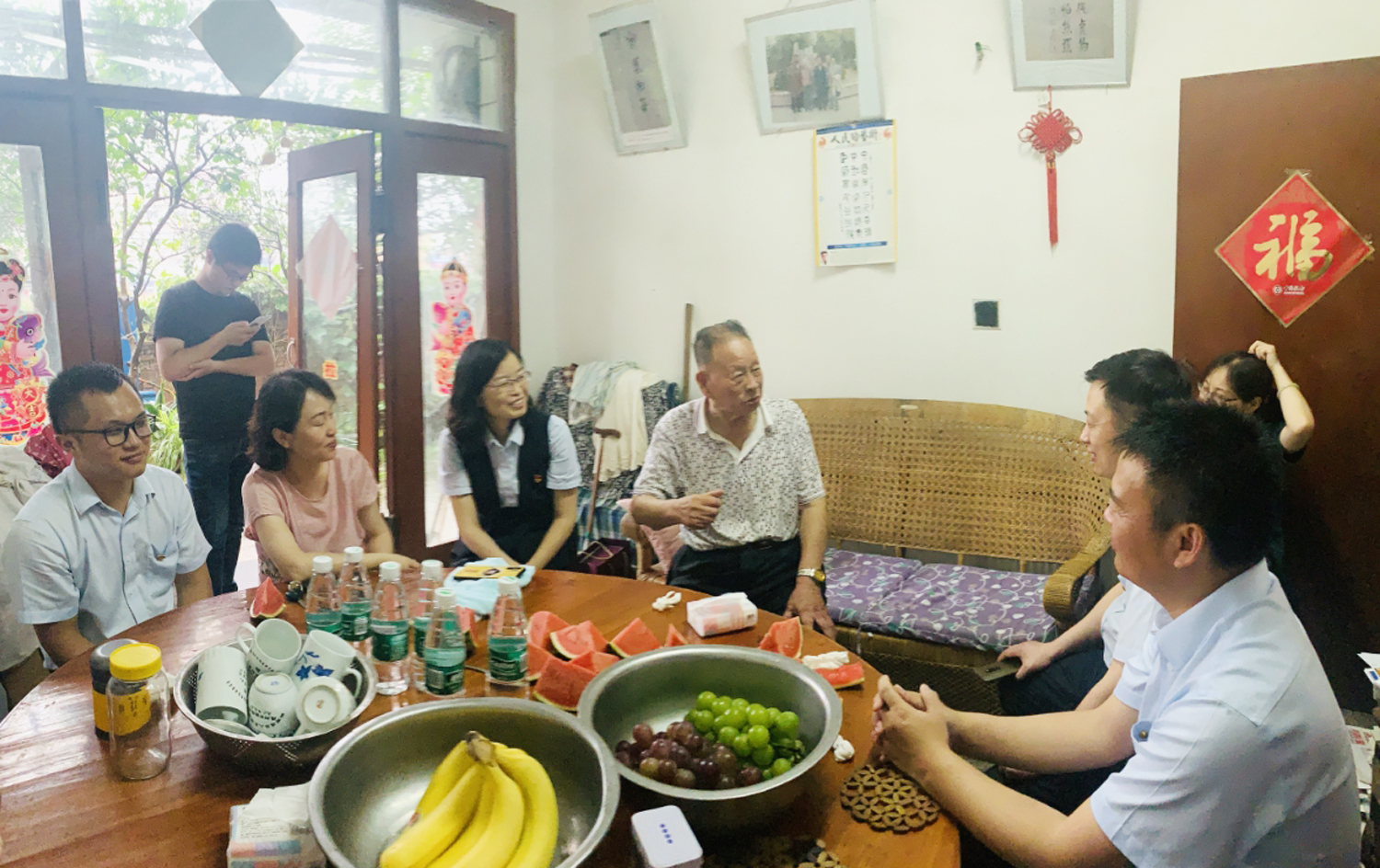 14日,机关第一支部党员和入党积极分子来到观音山街道中桥社区,慰问92岁的革命老兵赵吉人和妻子赵桂华,聆听老人讲述参军报国的感人故事。