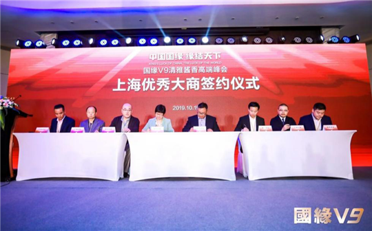 2019年10月19日,在今世缘举办的“中国国缘·缘结天下”国缘V9清雅酱香高端峰会上,国缘V9成功签约上海捷强等七家大V商家,这不仅意味着国缘V9以战略性的姿态进入上海市场,也代表着今世缘全国化征程再下一城。