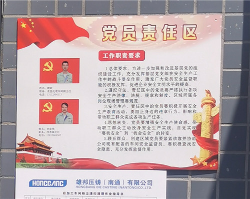 雄邦压铸(南通)有限公司生产车间“党员责任区”铭牌