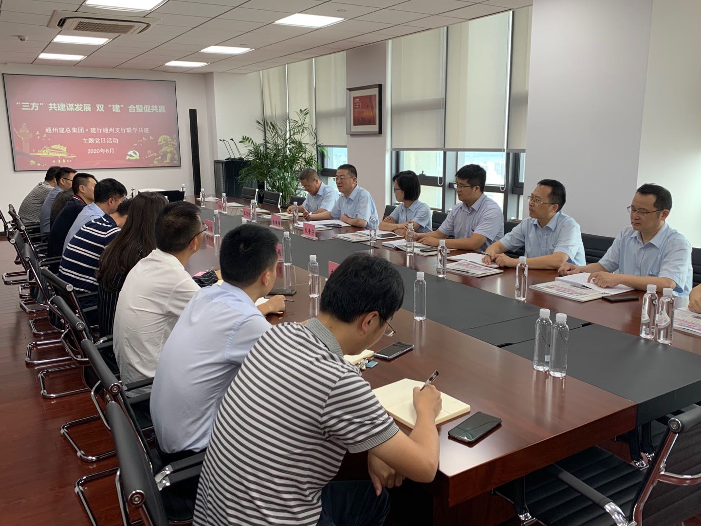 建行通州支行坚持党建引领,通过“三方共建”的形式,联合基层党支部、机关党支部,与通州建总集团共同打造“双‘建’合璧”党建联盟品牌,持续深化合作情谊。8月28日上午,在通州建总集团开展“双建合璧”联学共建主题党日活动,通州建行党委班子成员,公司部党支部、办公室党支部及营业部党支部部分党员代表参加了此次活动。