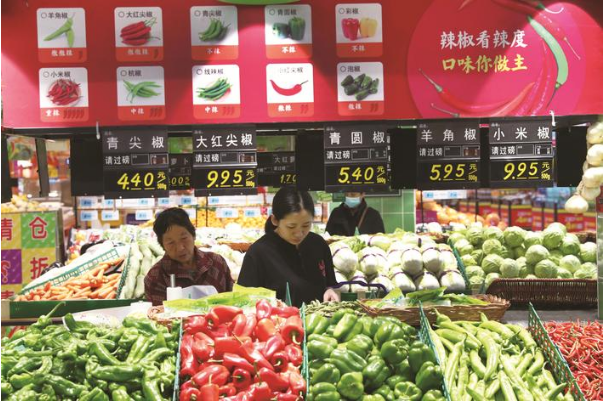 昨日在市区一家超市,市民正在选购蔬菜。当日,国家统计局南通调查队最新数据显示,9月南通鲜活食品价格环比下降0.4%,较上月回落1.0个百分点。 记者 许丛军摄 |