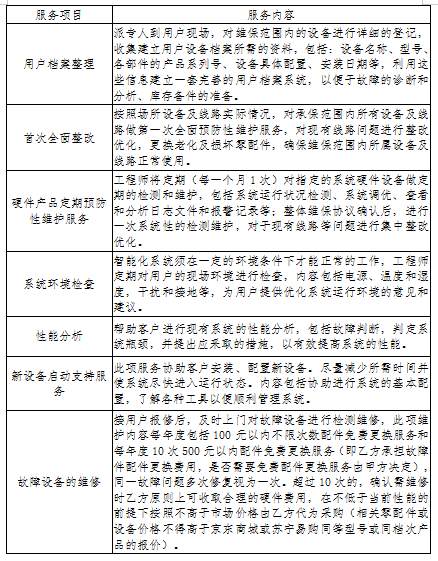 维护保修服务内容包含以上所列系统的线路检测、故障维修、软件升级、设备更换、系统调试及技术指导等,维保涉及设备数量见后附清单,具体服务内容及要求后述。