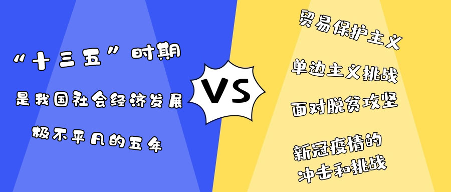 “十三五”时期是我国社会经济发展极不平凡的五年。面对复杂的国际形势,面对贸易保护主义、单边主义挑战;面对脱贫攻坚、全面建设小康社会的历史重任;面对新冠疫情的冲击和挑战;中国人民攻下了一个个碉堡,取得了一个又一个的胜利。用几组数字来说明,2019年,我国国内生产总值达到99.1万亿元,对世界经济增长的贡献率达到30%左右;贫困人口从2012年年底的9899万人减少到2019年年底的551万人,贫困发生率从10.2%降至0.6%;中国抗击新冠肺炎疫情斗争取得重大战略成果;“十三五”所制定的目标任务将如期完成。这五年我国经济实力、科技实力、国防实力、国际影响力又上了一个大台阶,为“十四五”规划开好局,起好步,奠定了扎实的基础。